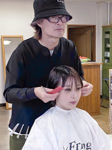 カラー剤は、白髪を染めるベースは明るい白髪染めに特化したヒカリナスのAB7を、色味はグレージュ系に特化したカラー剤、アディクシーカラーのスモーキートパーズ7とサファイア7をミックス。